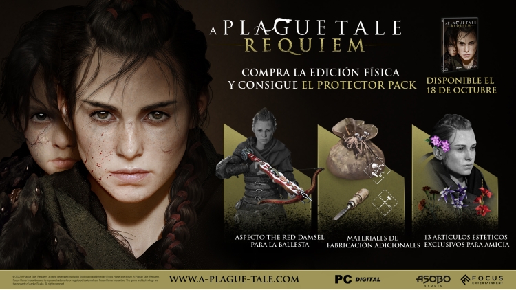 Pre-order A Plague Tale: Requiem to get the Protector Pack DLC! Set out on the right foot in the next chapter of Amicia’s and Hugo’s journey, with an exclusive crossbow skin, extra cosmetics for Amicia, and bonus crafting materials.