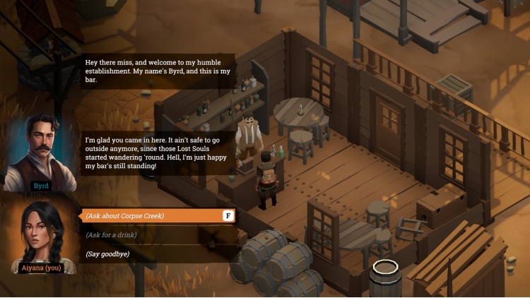 Experience a mixture of creation and mild survival elements in this isometric Wild West-inspired adventure RPG. Build your own world piece by piece while navigating various biomes and battling against the elements or - even worse - dangerous Lost Souls. Gather resources, construct bases, and craft weapons and tools to hunt, fish, farm, and fight.