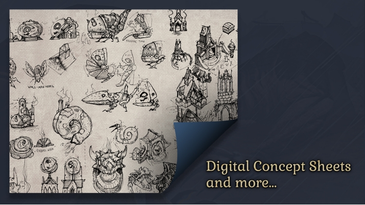 - 3 concept art sheets featuring art from the development of Against the Storm