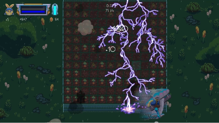 In a clever twist on the bullet hell formula, your goal isn’t blasting enemies out of the air! With Winrose Warren on the brink of starvation, your objective is to make sure the carrot fields yield as much harvest as possible. How? With your little plane, loaded to the brim with seeds and water–perfect to turn barren belts into fertile fields!