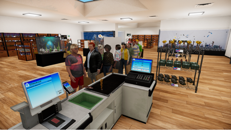 Dive into the vibrant world of aquatic retail with Aquatic Store Simulator! Take on the challenge of managing your very own underwater-themed supermarket, blending business management with the beauty of aquatic life. Stock shelves with exotic fish, decorations, set prices, take payments and maintain aquariums. Deliver fish, handle transactions, ensure your customers are happy. Customize and expand your store to become the ultimate aquarist entrepreneur.
