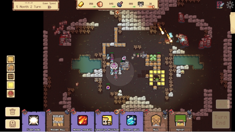 At the end of each month, enemies will attempt to destroy the town you so carefully built! Fortify your defenses and repel increasingly powerful waves of attackers!