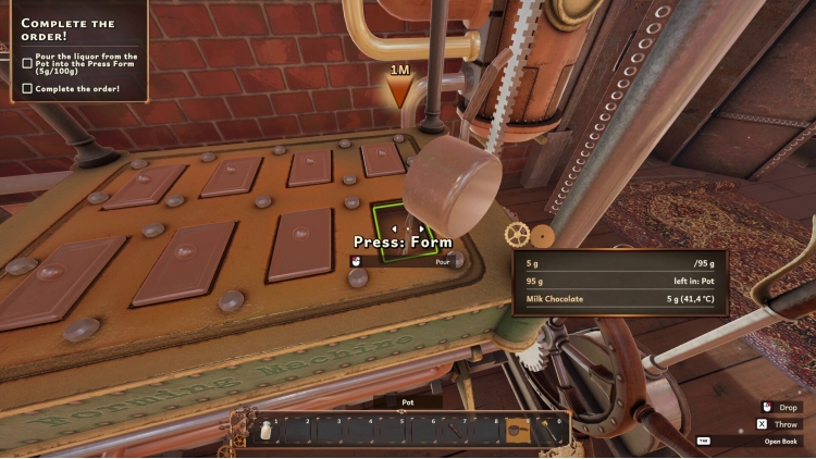 Create elaborate pralines using all the steam-and-cog-powered technology at your disposal in your workshop. Discover a variety of recipes and get creative with their presentation - change your chocolate’s shape, color, and even add some accessories to make it really stand out! Wrap it up in colorful packaging and voilà! You have created a box of beautiful chocolates!