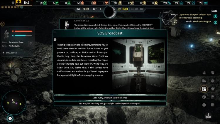 You are not the only one who is seeking a way out of this disaster. New crew members, some even pilots such as yourself, can join and bring you valuable abilities and new building platforms, but you have to feed and shelter them. Will you help the unfortunate? Or will you look out for yourself and not risk being betrayed? What kind of person are you?