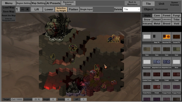 Navigate and transform spaces; modify, destroy, or replace grid elements to exploit terrain height and effects, gaining tactical advantages by strategically positioning your squad.