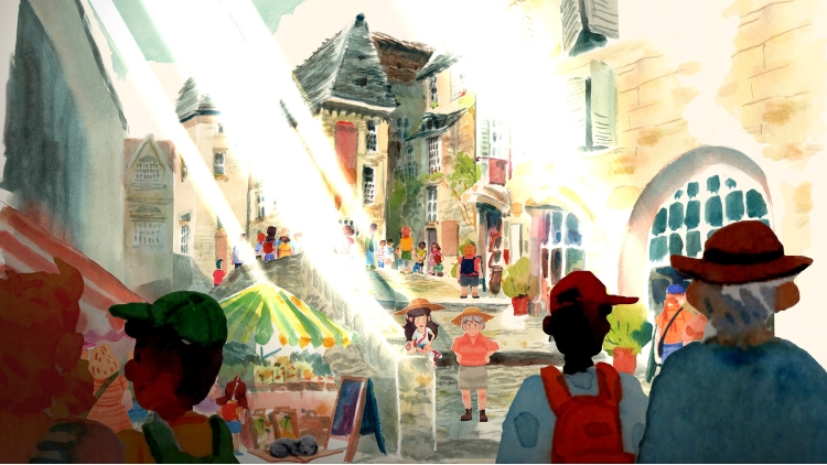 Explore Dordogne landscapes of a thousand summer colors, within sumptuous hand-painted watercolor environments. During your adventure, recall the moments, the panoramas, the scents, the sounds, and the sensations. Recount these vivid memories in your journal as a recollection of Mimi’s family past that’s unique to your experience and a nostalgic, touching reflection of your journey.