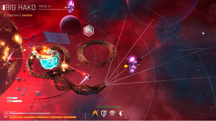 Put the drones in physical mode and you can cannonball into them, fling asteroids into enemies, bang enemies against each other, many tactical combinations are possible.