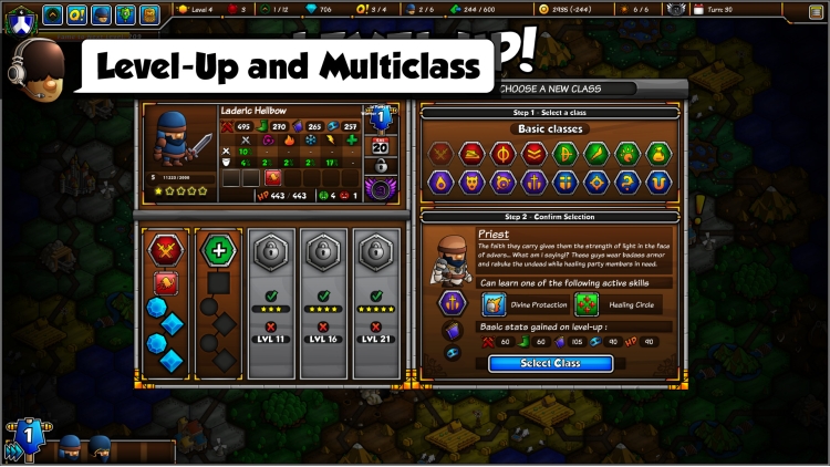 Add recruits to your ever-growing roster of unique characters and manage their progression as they gain experience and level-up. Experiment with the endless combinations and powerful synergies offered by our Multi Class system and build parties suited for every situation.