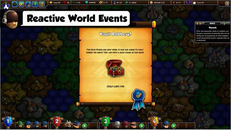 Epic Manager features many procedurally generated content like randomized adventurers, equipment items and quest rewards to make each play-through different from the next! We want Astraeus to feel like a living world that reacts to you, just as you react to it. World Events, Random Encounters and RNG-based dice rolls will determine the consequences of some of your choices, changing the priorities of your Agency’s day-to-day operations.