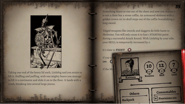 - Automated Adventure Sheet that keeps track of your stats, inventory and knowledge gained during your journey.