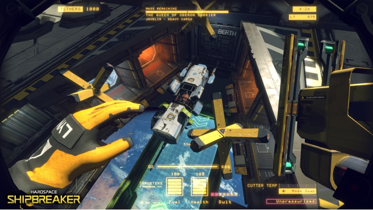 Across your career, you’ll have the privilege of paying your debt to us by purchasing salvaging rights to increasingly large and valuable ships. Cut them open and extract as much value as possible!
