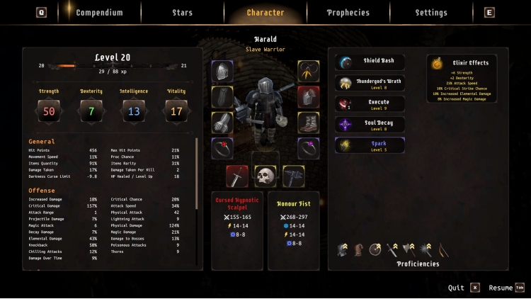 Prophecy Cards: An achievement system, allowing the player to unlock new game mechanics, skills, and items.