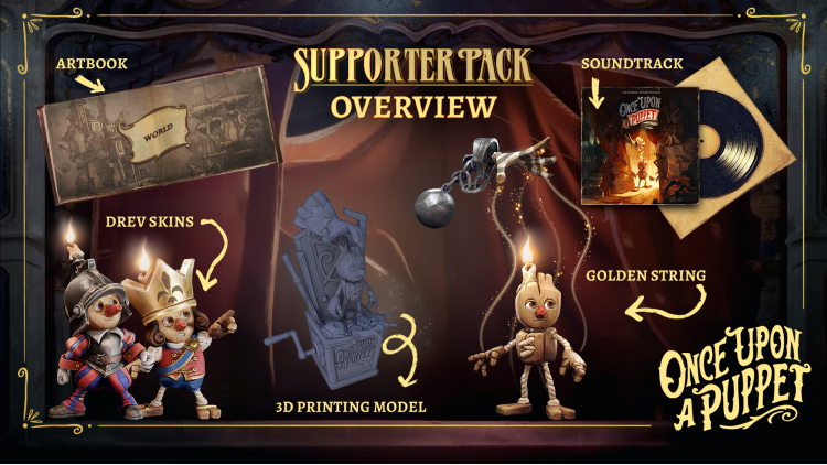The Supporter Pack contains a collection of DLC and goodies for those who want to go the extra mile to support the developers of Once Upon A Puppet: