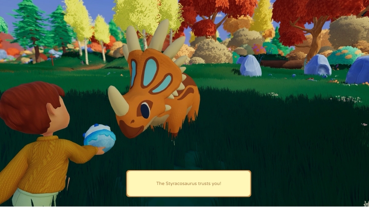 Set out with your dino companion, Lucky, to uncover the island’s secrets and discover new dinos. Your arrival on the island is met with welcome curiosity by the local townsfolk who can help you on your quest (and just might give you more work to do!). Together with Lucky, build a thriving ranch, assist local villagers, befriend adorable dinosaurs, and unearth the island’s lost history to build your cozy dino sanctuary.
