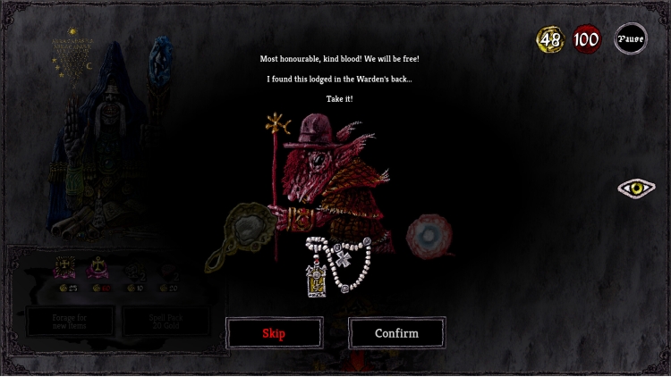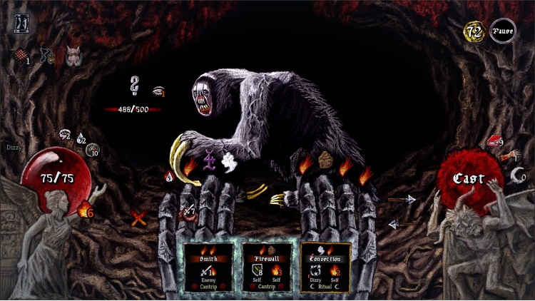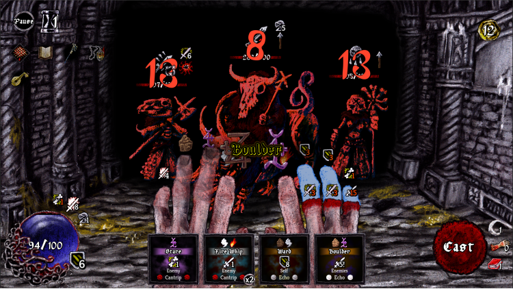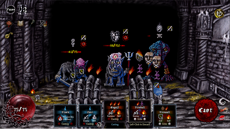 You’re a wizard. A not-so-heroic wizard imprisoned for wizard crime, awoken from your wizard slumber by an invitation from your niece. Escape from jail and traverse a hostile world crawling with danger. Every turn is a frenzy of spell sigils, cracking bones, and desperate gestures as you shred through monstrosities with raw elemental power.