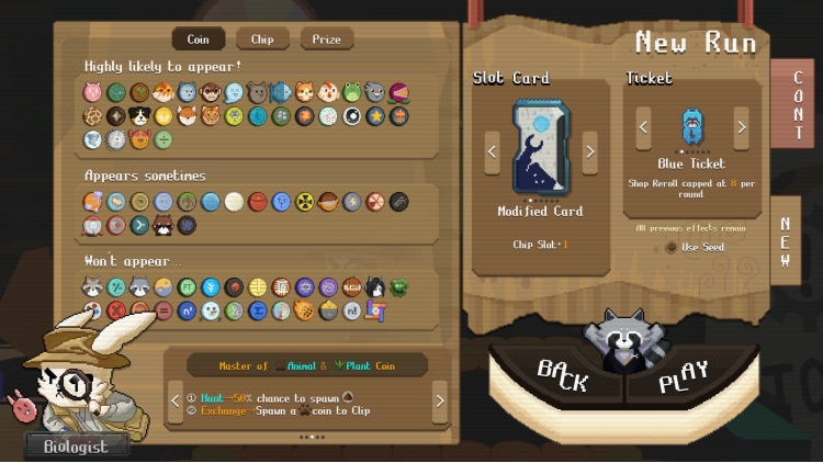 Play as one of several unique characters, each with their own set of themed coins and playstyle. Take on the role of a greedy raccoon manager who excels at math-based combos, or a quirky biologist who specializes in animal-based coins. Every character offers a fresh and wildly different way to play.
