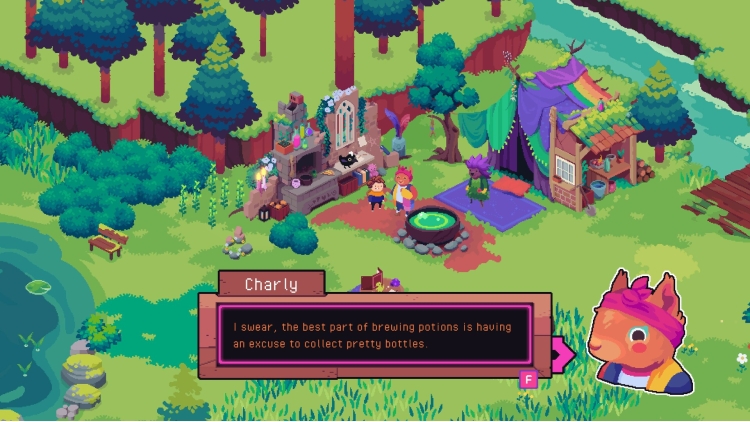 After falling through one of these mysterious portals yourself, you encounter the local witch Sage, who decides you’re the best person to help her in her quest. Taken under her wing as an apprentice, you’ll be able to help search for her missing Familiar, Flufferstoop.