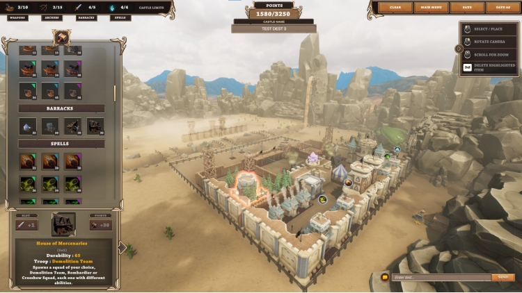 Complete castle building freedom! Construct walls, army barracks, defense towers, special buildings, etc in any which way you want.