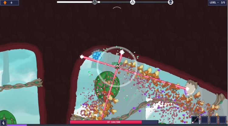 Slingbot Survivors sits between slower-paced survivor-likes and more intense action roguelites, offering a higher skill ceiling through movement while keeping the accessibility of auto-shooter combat.