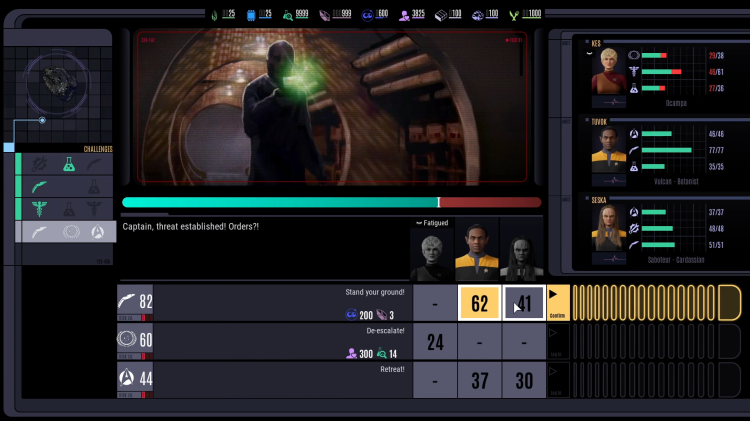 Combat and away missions: Use the talents of your crew smartly to minimize risk during away missions as well as strike boldly during ship combat encounters.