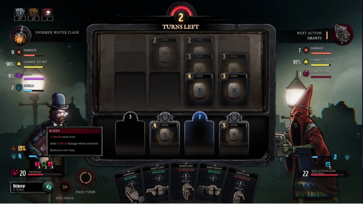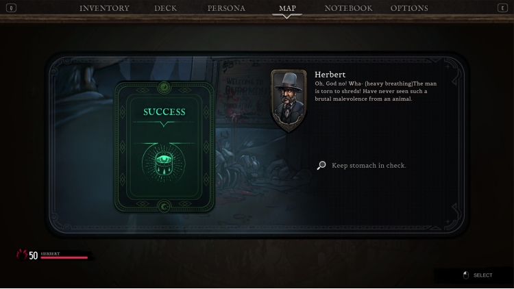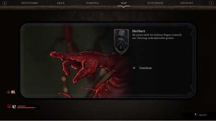 The stylish art will set the mood to a gothic horror adventure where Herbert tries to survive by using his skills, items and deck.