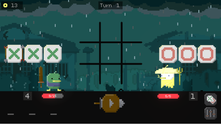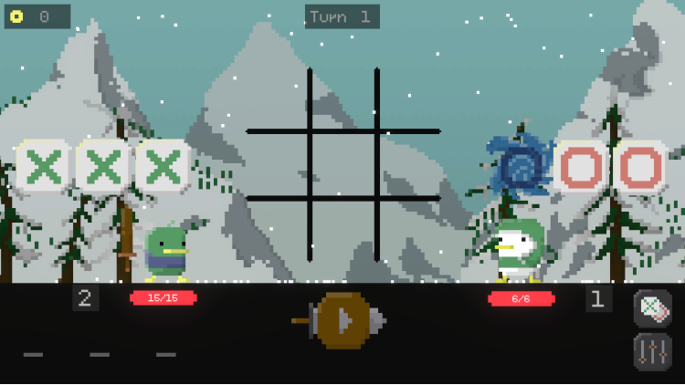 Deal damage to opponents by forming combos on the tic-tac-toe board! Carefully position your tiles on the board to create matches, unleash attacks, and crush the fowl enemies–but make sure to plan ahead, since the board won’t clear between attacks!