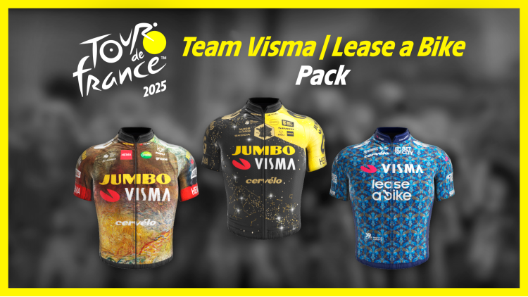 Ride with the emblematic jerseys of previous Tour de France thanks to the Team Visma | Lease a Bike Pack and try to reproduce the exploits of the famous cycling team. This DLC contains 3 complete kits: