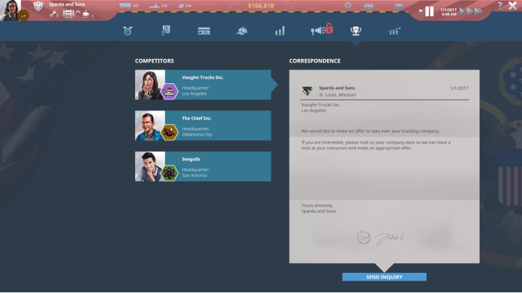 You thought that you had finally mastered your business? But are you prepared for the upcoming economic crisis in the automotive sector? TransRoad: USA will simulate economical KPIs like markets and prices and will always come up with a new event to surprise you. Challenge accepted?