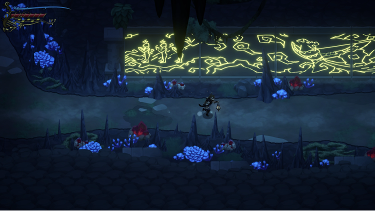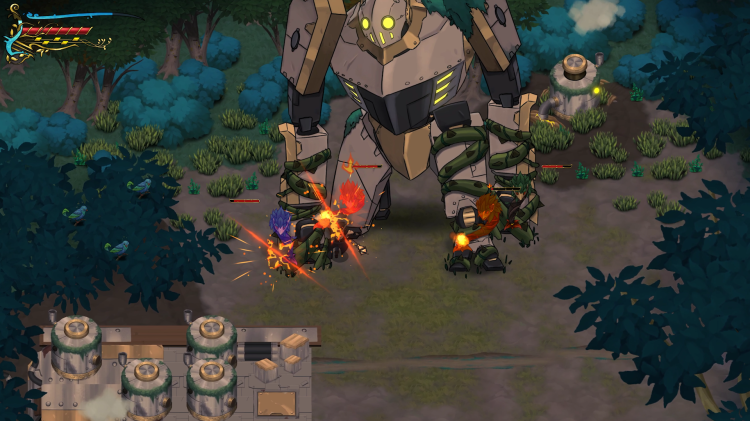 A domain full of mysteries and secrets awaits! Dangers and opportunities lurk among the trees and ruins that fill the ancient woods. Traveler will meet other adventurers, pursuing their own goals, be they human or robot. He will also encounter ancient mysteries that only his mastery of song-spells can solve, by altering environments and manipulating objects.