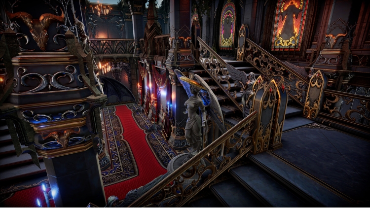 Drape your walls, floors, and most valued places of power in the style of Castlevania. Adorn your walls with the sweeping iconography of pristine angelic figures juxtaposed with the bared fangs of the evolved beast of the night wrapped around the head of your bejeweled coffin. Sit on a throne that projects power, shadowed only by the great bat wings cresting each side of its towering frame.