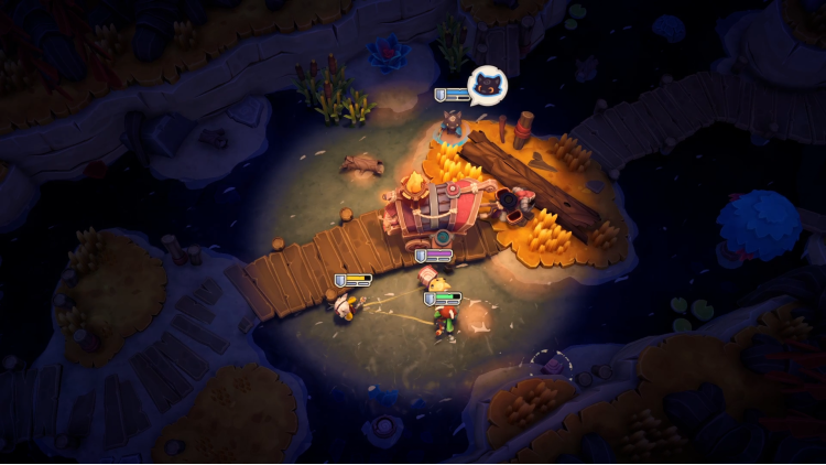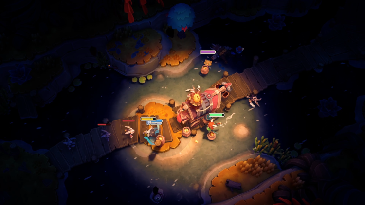 Clever cooperation is key as their way is full of obstacles. While daytime is all about collecting resources and improving your trusty wagon, things get risky during the night. When the sun sets, bandit bunnies and badgers rally to attack! The feline friends must defend their wagon while ensuring their beacon fire does not die out.