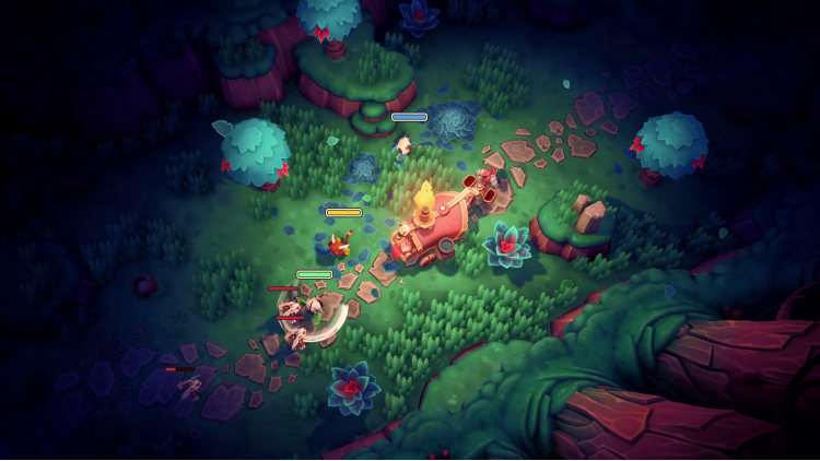 Wild Woods is a couch co-op game full of action, teamwork and woodland critters. One to four players take on the role of brave little cats defending their wooden wagon on its way through a dangerous forest.