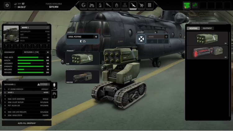 - Infuse alien technology across all manner of equipment, and even develop autonomous battlefield combat platforms and sentry guns to assist with your forward operations as well as the defense of your bases. If you give your engineering teams enough time, money, and resources, you'll find yourself well equipped for the threat - unfortunately, all three are perpetually scarce. Will you rush to produce automated combat platforms to minimize the threat to your operatives? Or produce additional dropships to respond to more threats at a time? Or will you seek improved armaments for your fighters to strengthen their ability to intercept and take down alien squadrons?